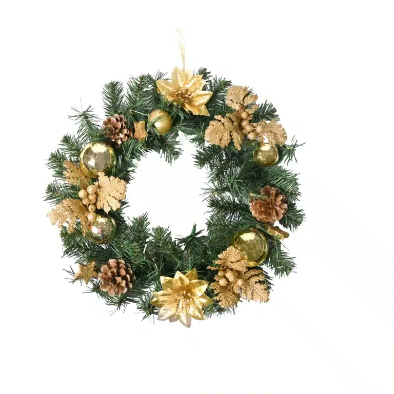 Couronne de fleurs avec décorations dorées 45cm vert CARREFOUR