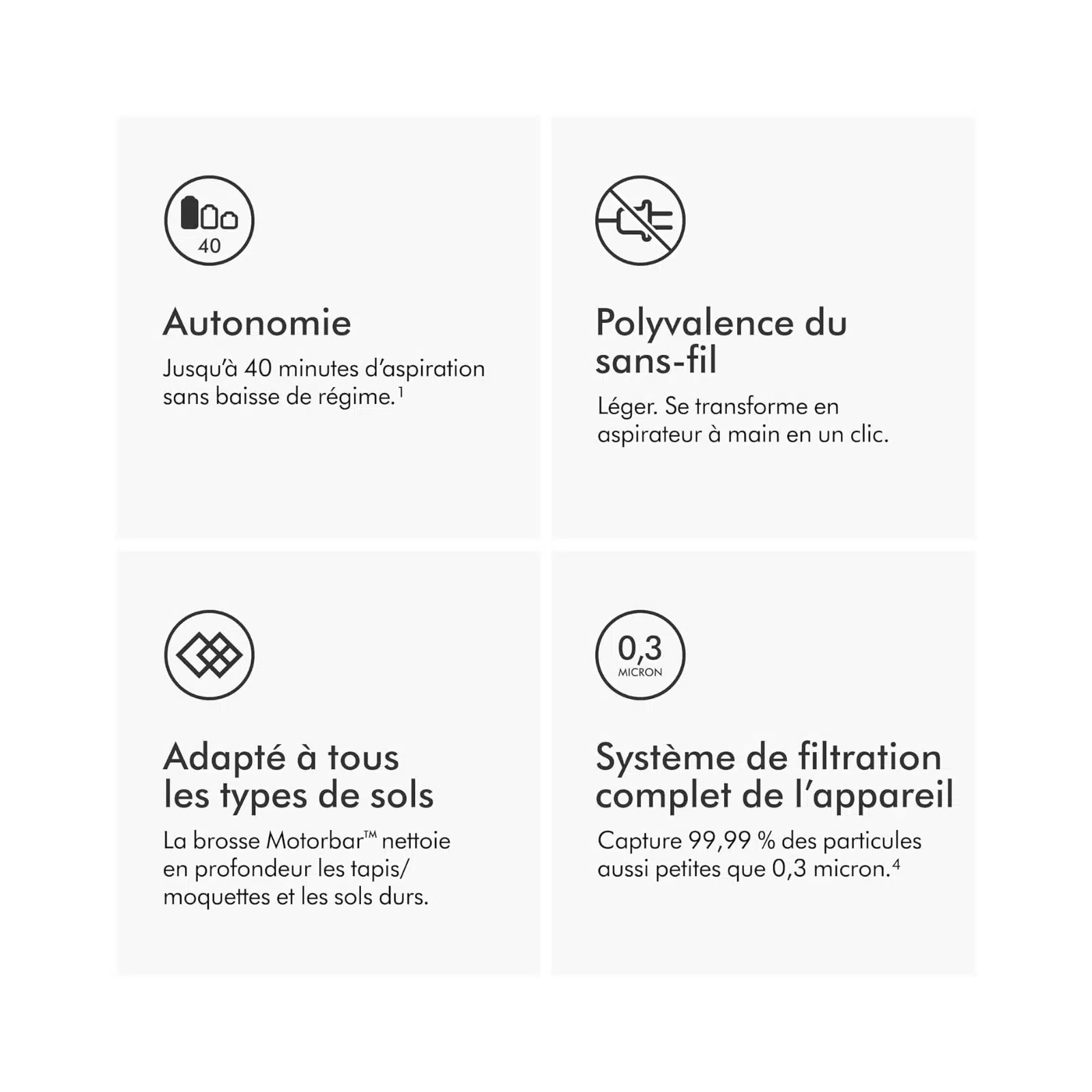 L’aspirateur sans fil Dyson V8 Advanced redéfinit la performance de sa catégorie en offrant 10 % de puissance d’aspiration supplémentaire par rapport aux modèles V8 classiques. Équipé d’un moteur numérique tournant à 110 000 tours/minute, cet appareil génère une force impressionnante de 130 airwatts, capable de déloger les débris les plus incrustés sur les carrelages, parquets ou moquettes épaisses. Véritable référence pour les propriétaires d’animaux, il intègre la brosse Motorbar dotée d’une technologie de démêlage automatique qui aspire les poils et les cheveux sans jamais s’obstruer. Cette puissance brute, alliée à une conception acoustique soignée limitant le niveau sonore à 74 dB, fait de cet aspirateur balai un outil aussi redoutable que discret pour un entretien en profondeur de tout l’habitat.