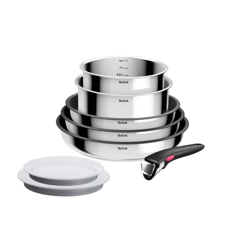Batterie de cuisine Ingenio Cook Eat 8 pièces Empilables Acier Inoxydable Revêtement Anti-adhésif Tous Feux Dont Induction Poignée Amovible – TEFAL