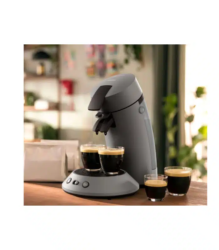 La cafetière Senseo Original Plus PHILIPS en gris anthracite allie design moderne et technologie avancée pour un café riche et onctueux. Avec sa fonction de sélection d’intensité, savourez un café à votre goût en appuyant sur un bouton.
