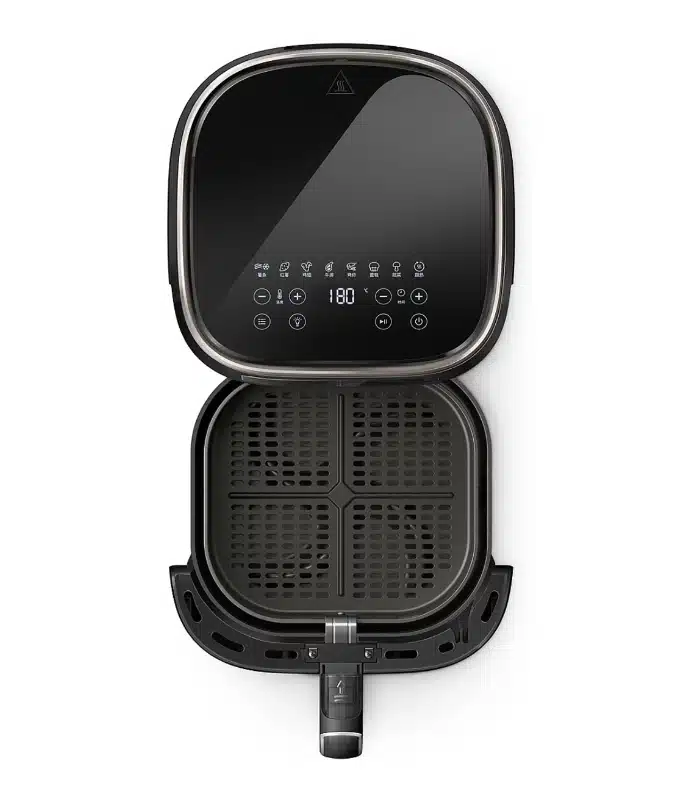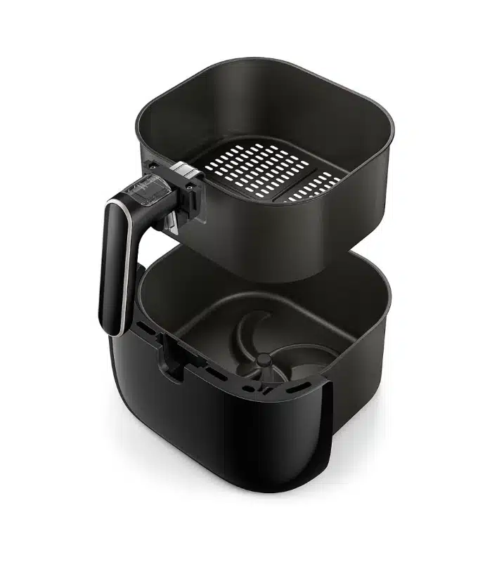 Équipée de 7 préréglages (frites, viandes, poissons, légumes, gâteaux, beignets, ou réchauffage) et d’une plage de température ajustable de 80 °C à 200 °C, cette Airfryer automatise chaque recette pour un résultat optimal en toute simplicité. Son revêtement antiadhésif et son panier amovible compatible lave-vaisselle simplifient le nettoyage, tandis que le panneau tactile intuitif propose un accès direct aux modes et à la minuterie.