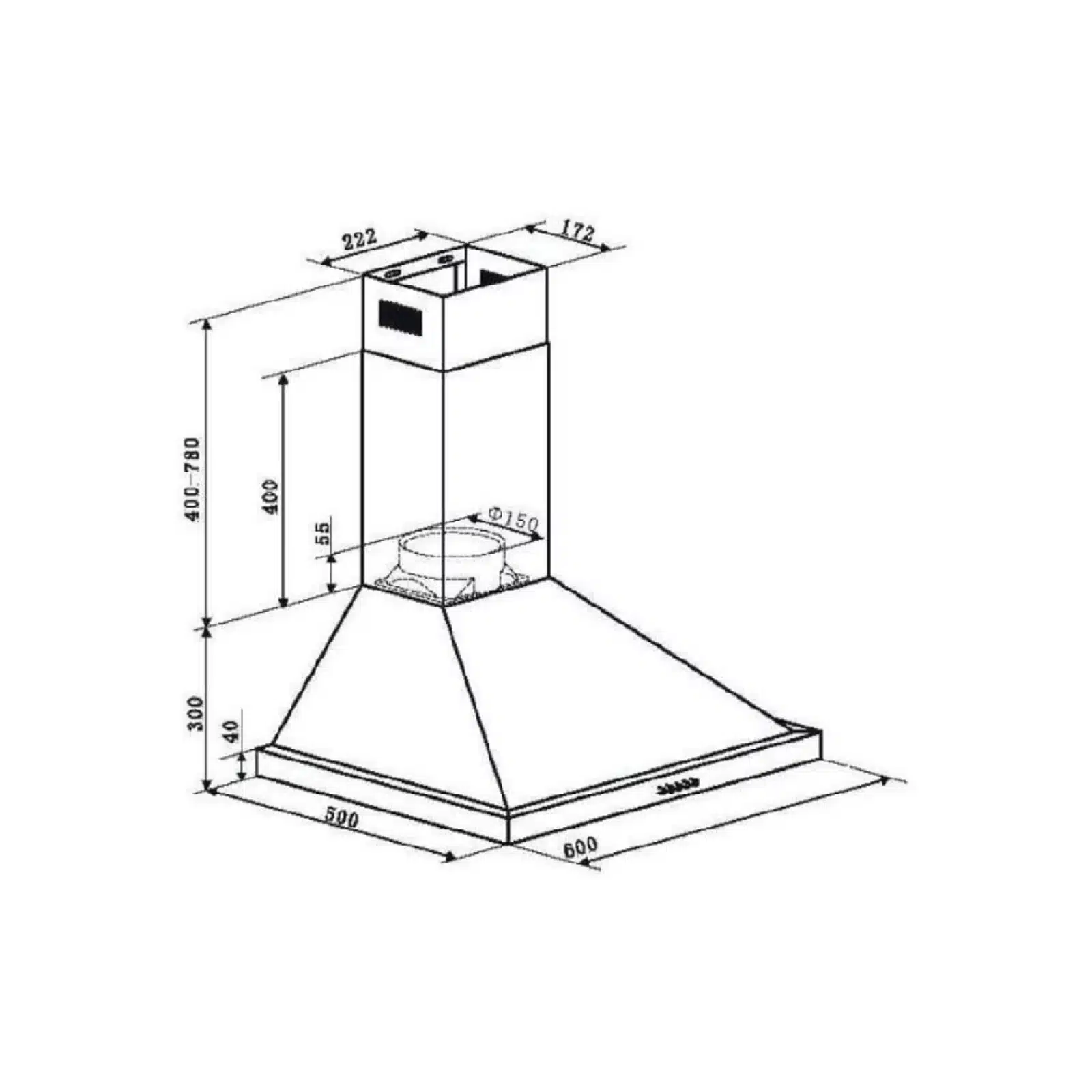 Hotte Murale AH3419 Acier Inoxydable 482 m³/h – AMICA