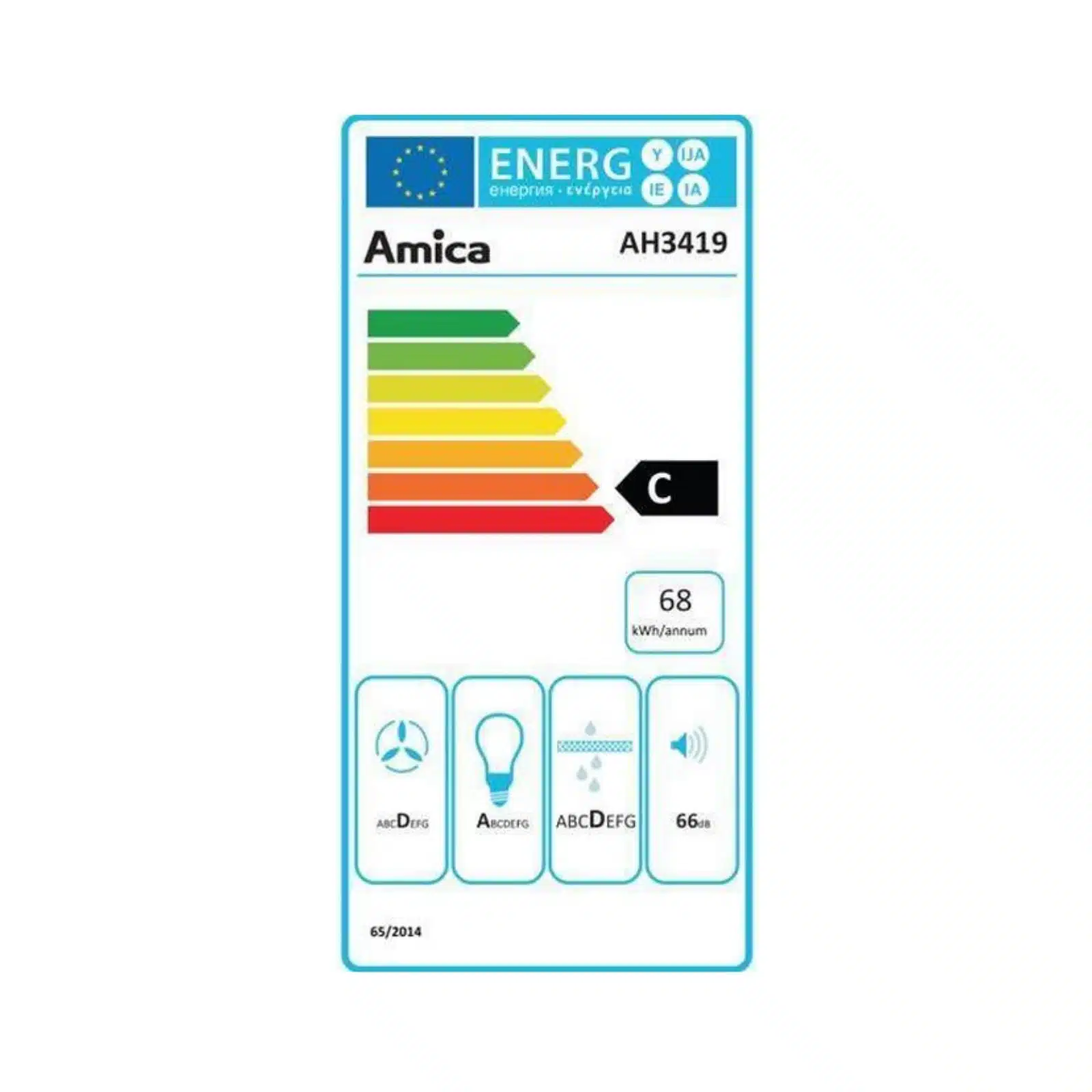 L’efficacité énergétique n’est pas en reste : avec une consommation annuelle de 68 kWh et une plage d’efficacité énergétique classée de A+++ à D (classe D pour la dynamique du fluide), cette hotte Amica se montre respectueuse de votre budget et de l’environnement. Deux ampoules de 2 W chacune éclairent idéalement votre plan de travail, tandis que le moteur de 125 W assure un fonctionnement fiable et performant. Faites le choix de la propreté et du style avec la hotte murale Amica AH3419.