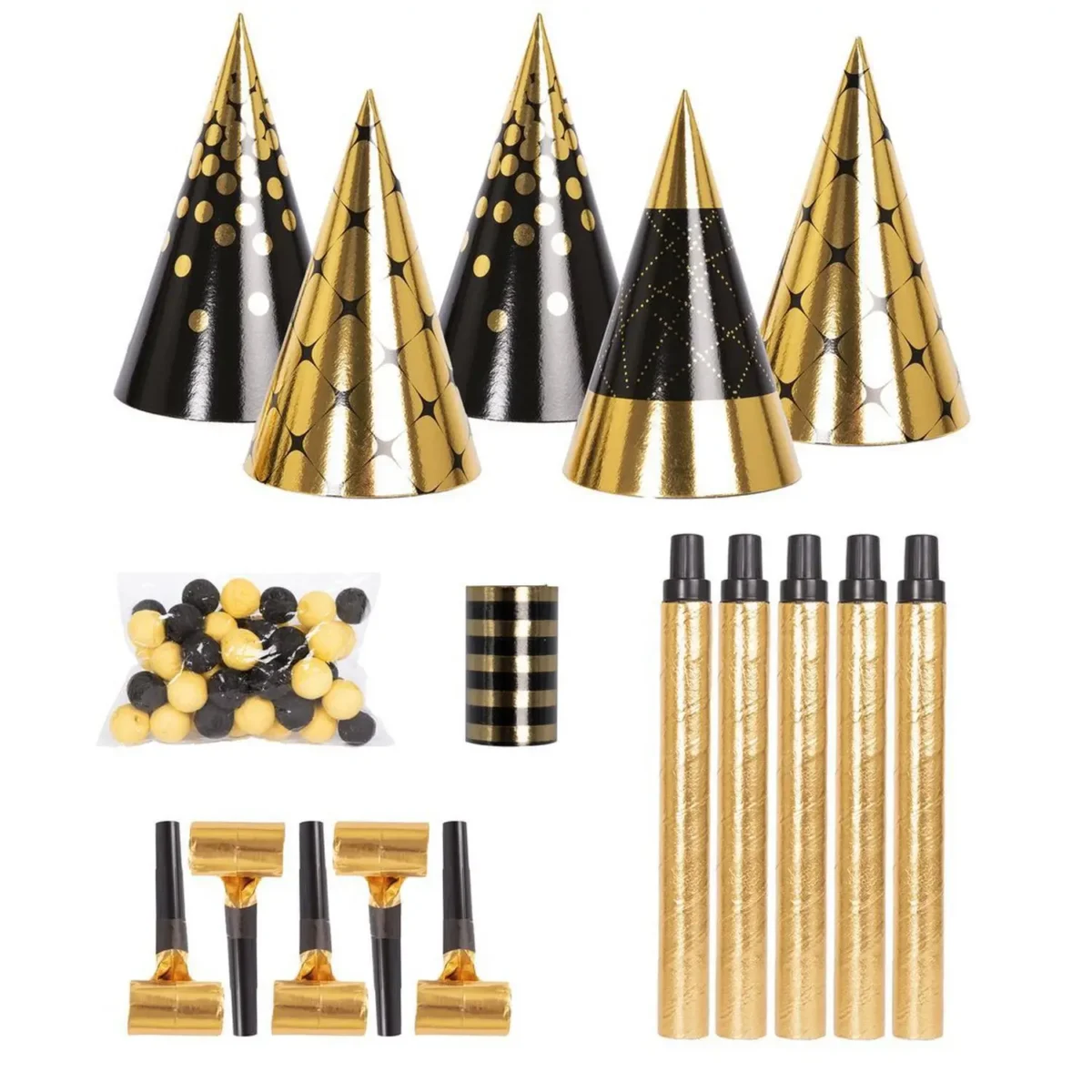Kit cotillons festif or et noir pour 5 personnes – P’TIT CLOWN