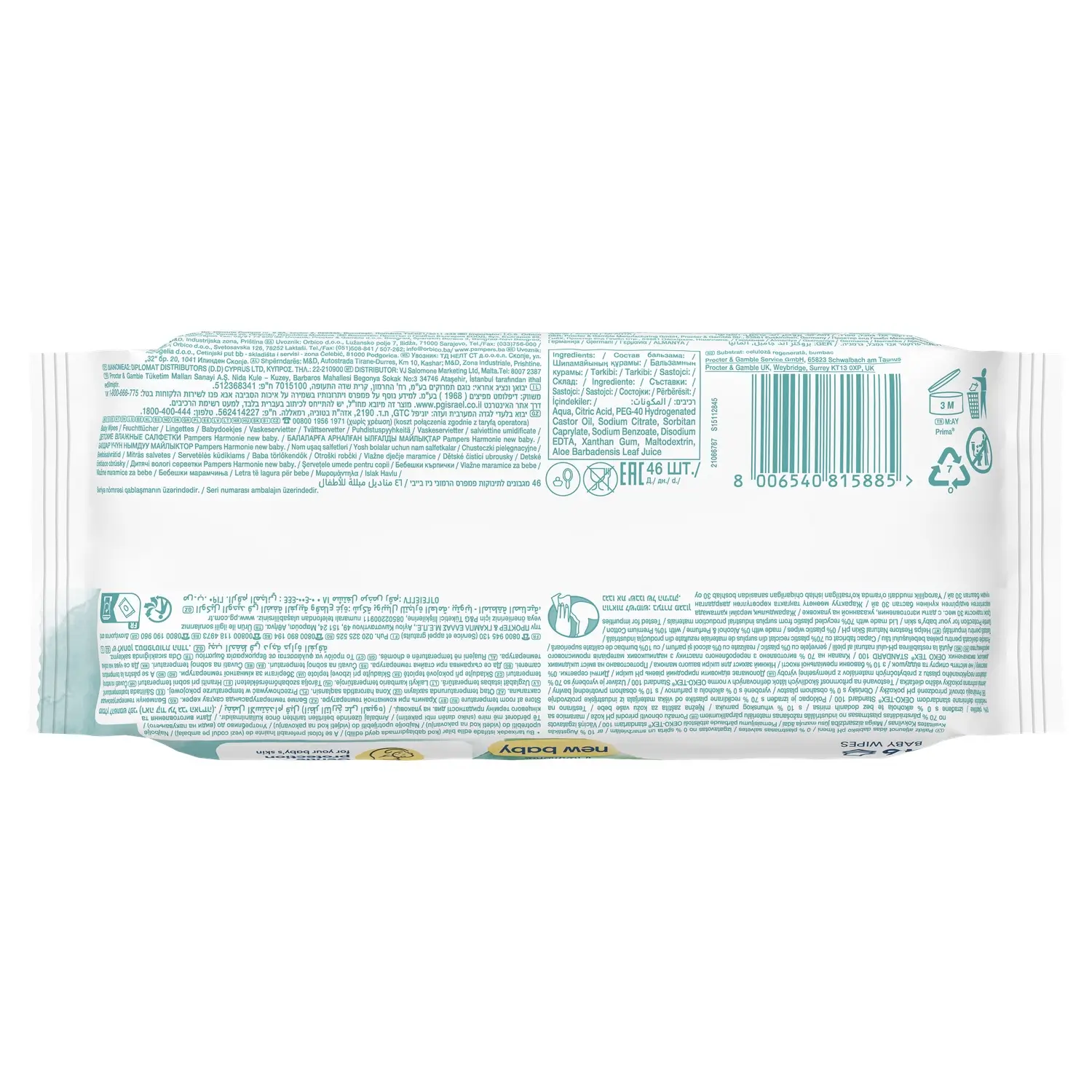 Lingettes bébé Harmonie Nettoyantes Peaux Sensibles, Sans Alcool ni Parfum – PAMPERS