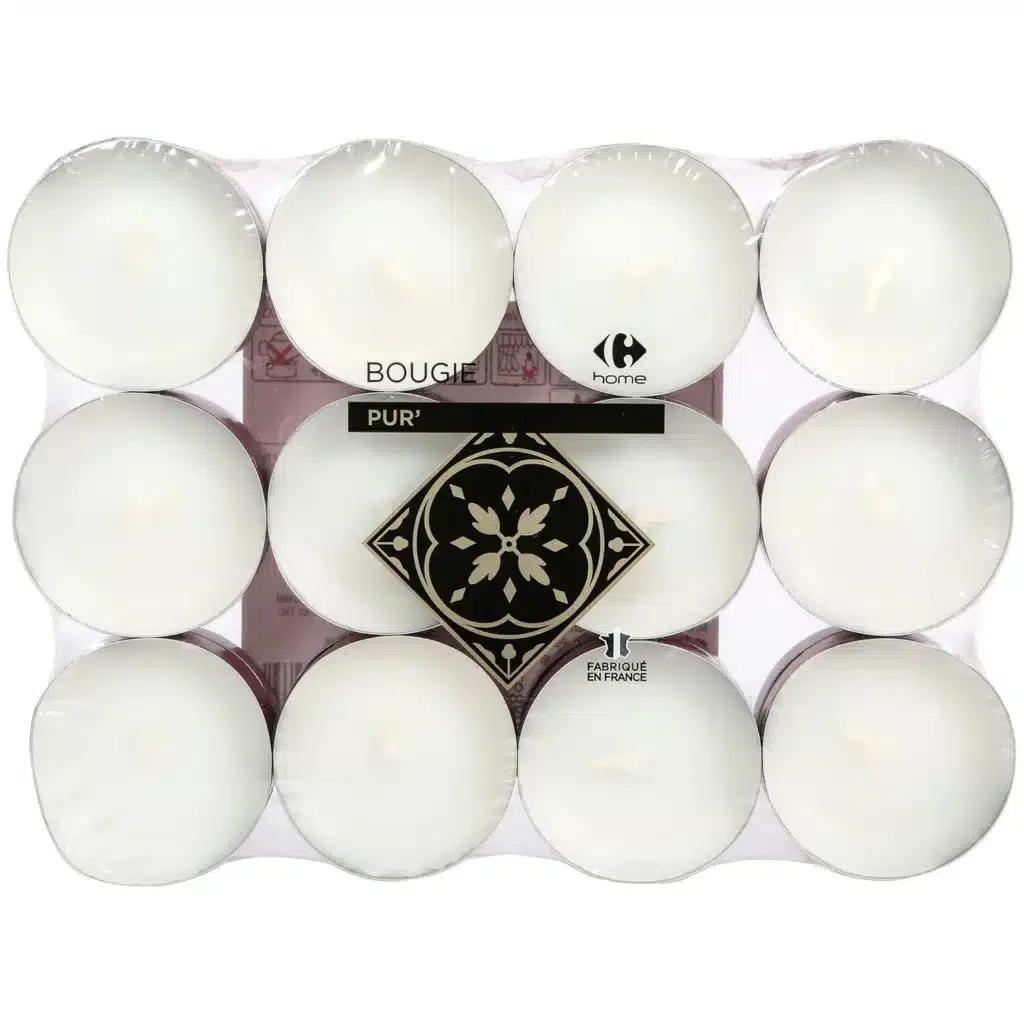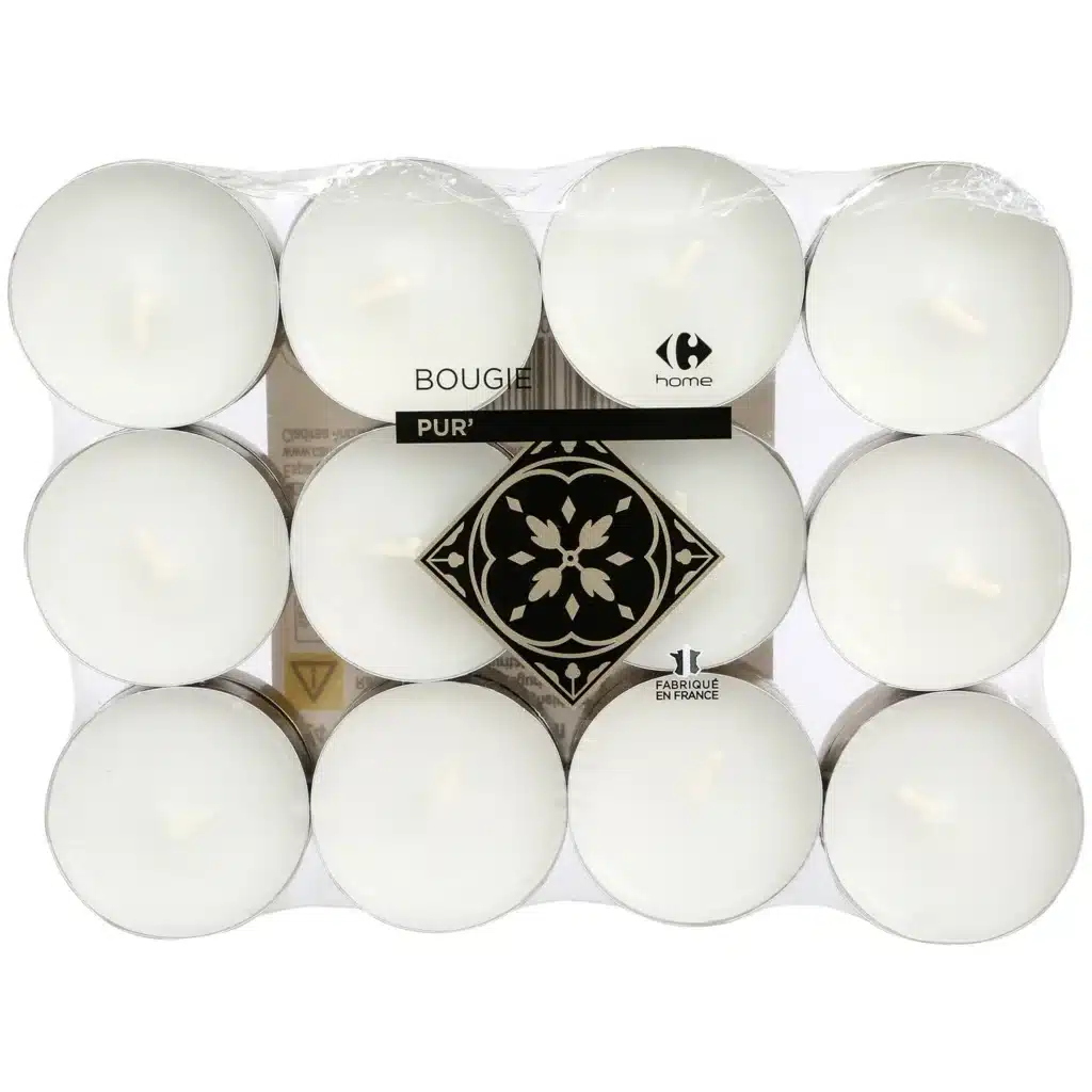 24 bougies chauffe-plats blanches godet rouge