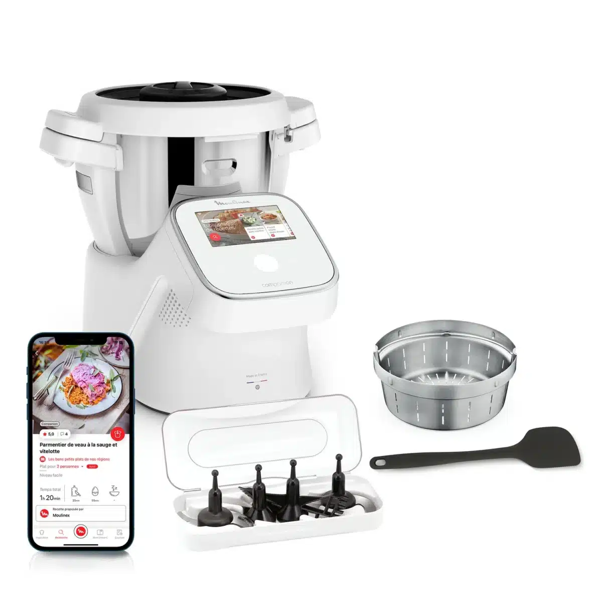 Plus silencieux que ses concurrents, l’i-Companion Touch préserve la quiétude de votre cuisine, tandis que son engagement réparable 15 ans garantit durabilité et respect de l’environnement. Ses accessoires (couteau hachoir, couteau pétrin/concasseur, batteur, fouet, panier vapeur interne et spatule) s’installent et se nettoient en lave-vaisselle pour un rangement simplifié. Offrez-vous le luxe d’un chef à domicile, surprenez votre entourage et révélez vos talents culinaires grâce à ce partenaire tout-en-un qui transforme chaque repas en une expérience gourmande inoubliable.