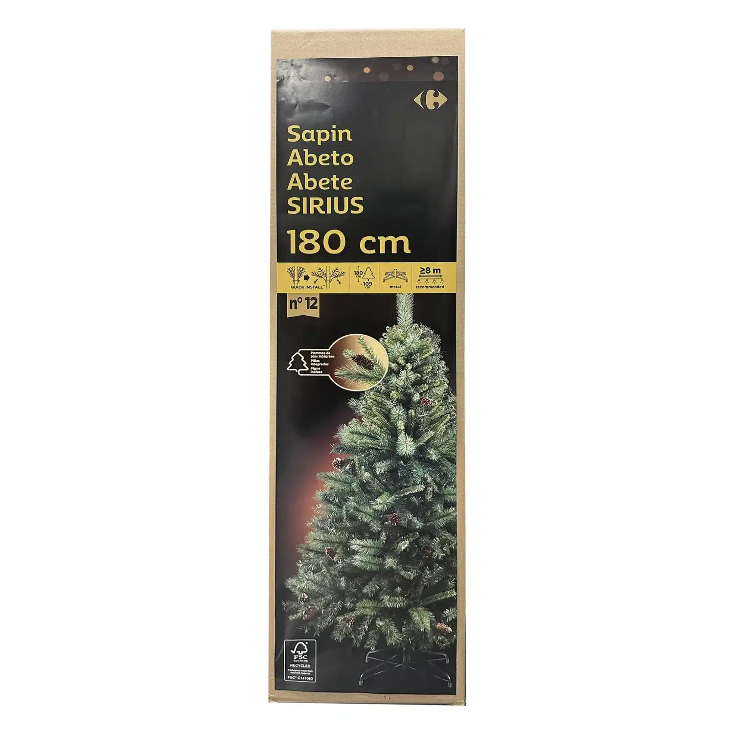 Sapin artificiel vert avec pomme de pin premium 180 cm Sirius CARREFOUR