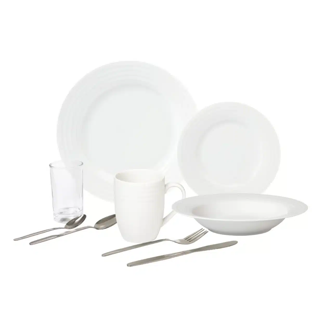 Composé de 4 assiettes plates (Ø 26,5 cm), 4 assiettes creuses (Ø 21,5 cm), 4 assiettes à dessert (Ø 19 cm), 4 gobelets (22 cl), 4 mugs (30 cl) et d’une ménagère de 16 couverts, ce service est prêt à recevoir jusqu’à 4 convives avec style et harmonie. La porcelaine blanche apporte une touche lumineuse à chaque repas, tout en se mariant facilement avec tous les styles de décoration de table.