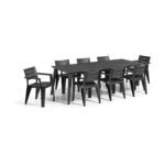 Adaptez votre espace extérieur à toutes les occasions avec la table de jardin modulable Julie de Keter. Véritable caméléon de la terrasse, cette table en résine haute qualité se distingue par son ingénieux système de deux plateaux amovibles, vous permettant de passer d’un déjeuner intime à une grande réception familiale en un tour de main. Son fini gris graphite à l’aspect lattes de bois apporte une touche naturelle et moderne sans les contraintes d’entretien du bois véritable.