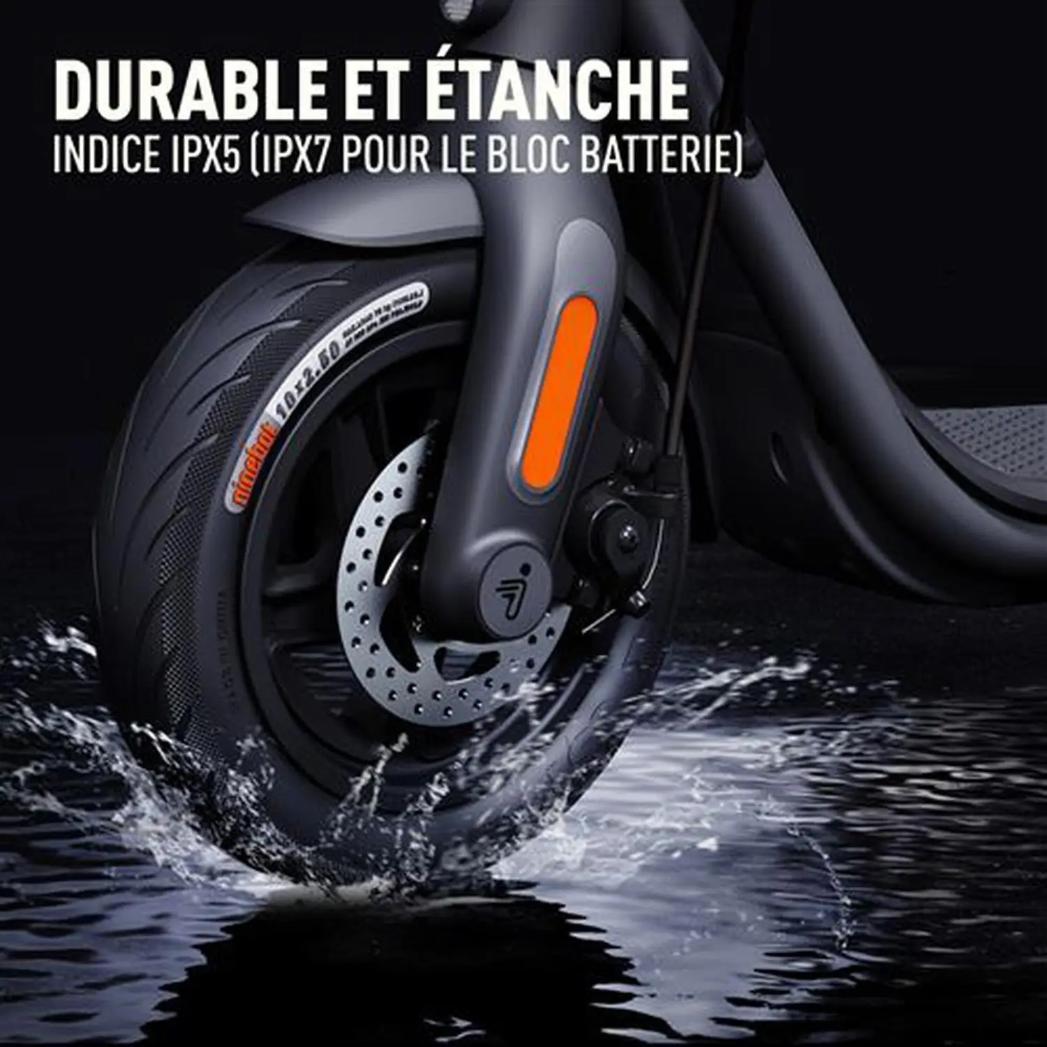 • Pneus résistants offrant une excellente adhérence et une absorption des chocs pour un confort de conduite supérieur.